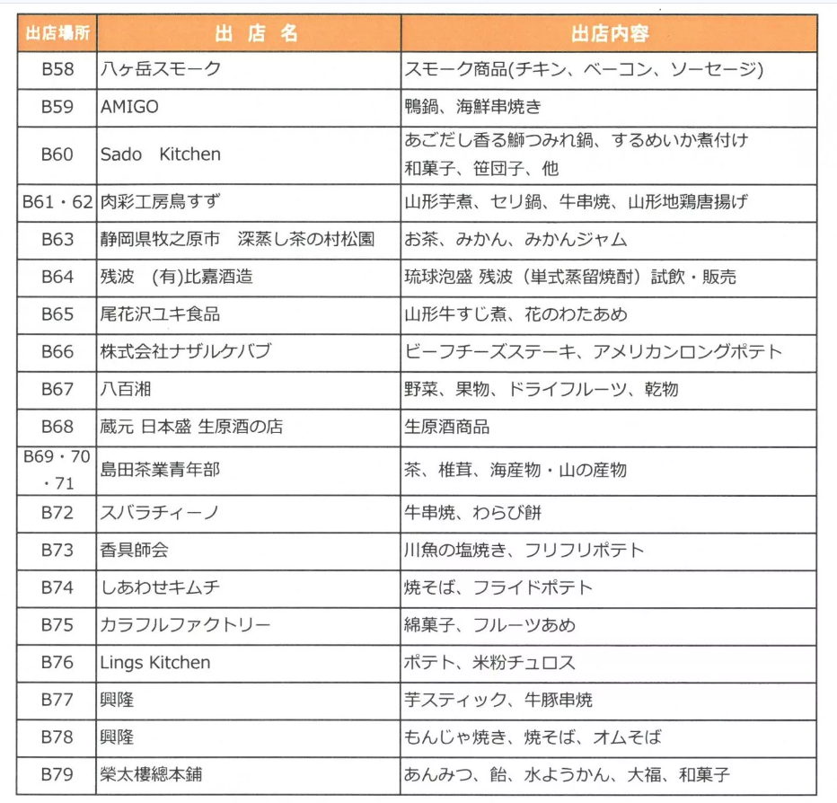 過去に出店のあった屋台や、キッチンカーの種類はこちらです。