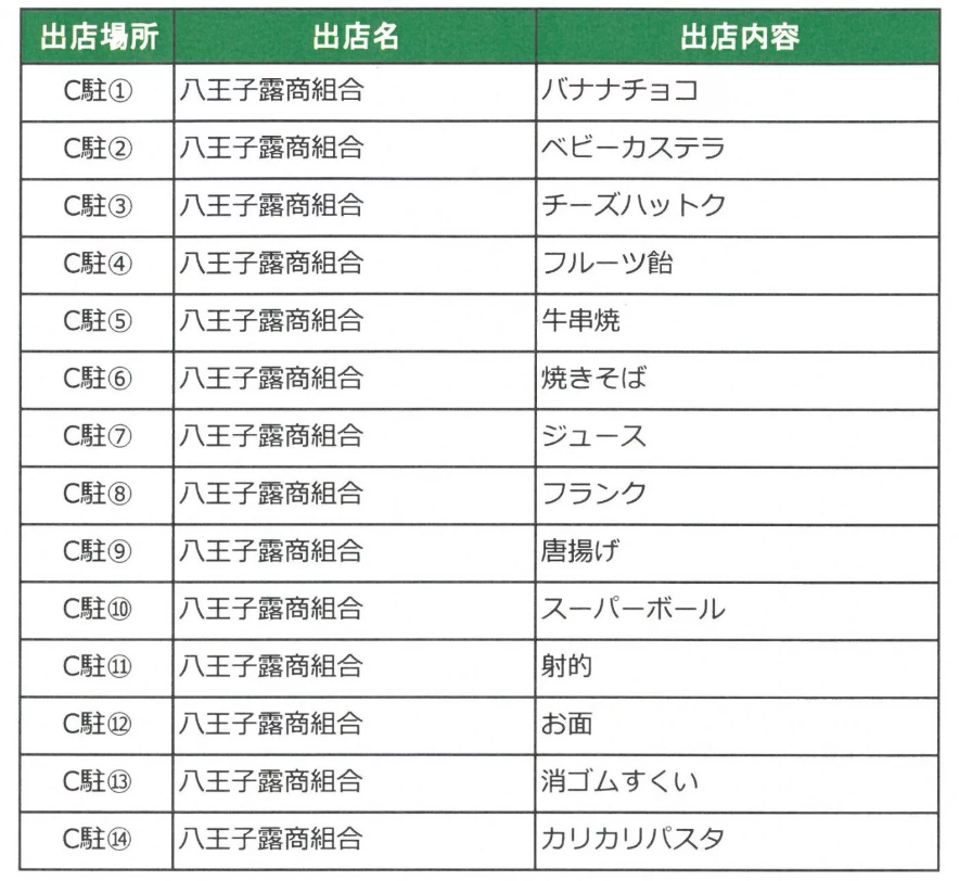 八王子いちょう祭り2024の屋台の出店場所はどこ?