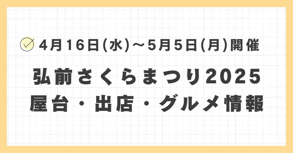 弘前さくらまつり2025の屋台・ライトアップはどこで何時まで?おすすめのグルメや混雑とすいている時間も紹介