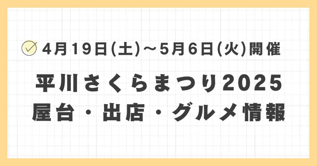 平川さくらまつり2025の屋台・ライトアップはどこで何時まで?おすすめのグルメや混雑とすいている時間も紹介