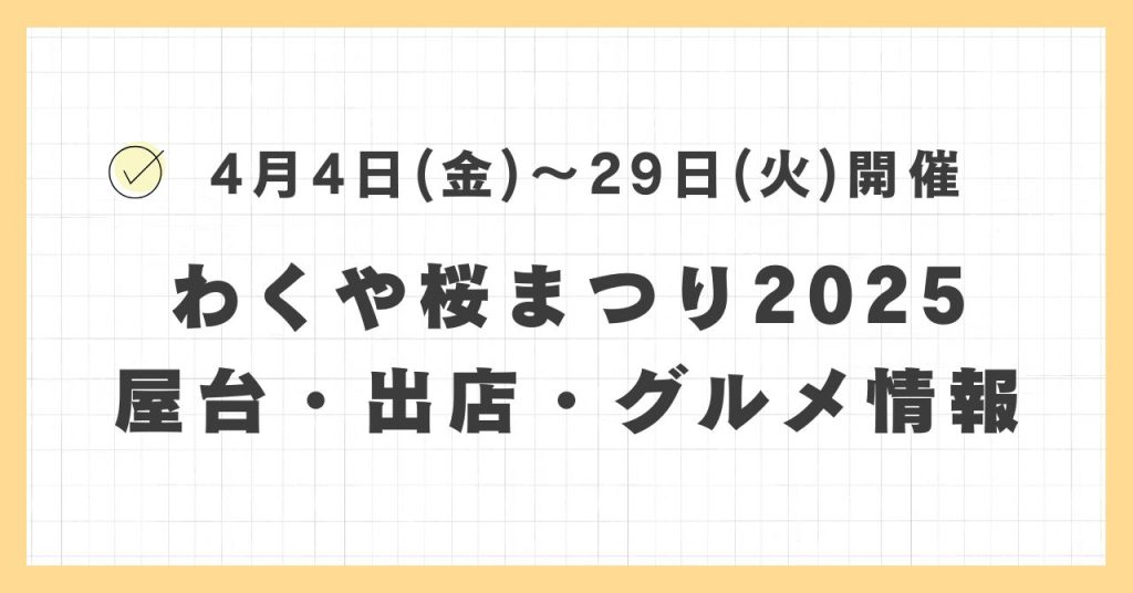 わくや桜まつり2025の屋台・ライトアップはどこで何時まで?おすすめのグルメや混雑とすいている時間も紹介