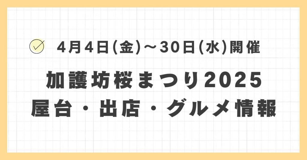 加護坊桜まつり2025の屋台・ライトアップはどこで何時まで?おすすめのグルメや混雑とすいている時間も紹介