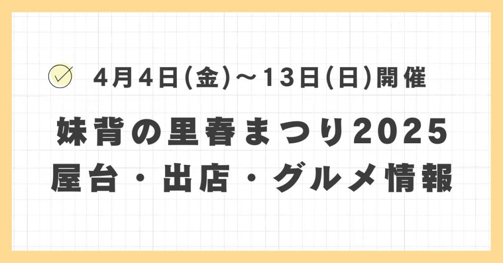妹背の里桜祭り2025の屋台・ライトアップはどこで何時まで?おすすめのグルメや混雑とすいている時間も紹介