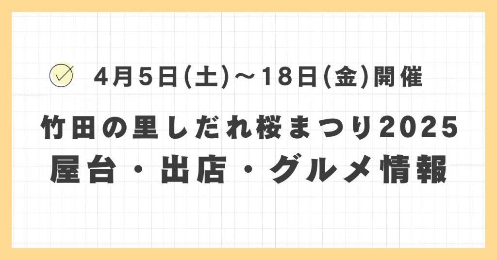 竹田の里しだれ桜まつり2025の屋台・ライトアップはどこで何時まで?おすすめのグルメや混雑とすいている時間も紹介
