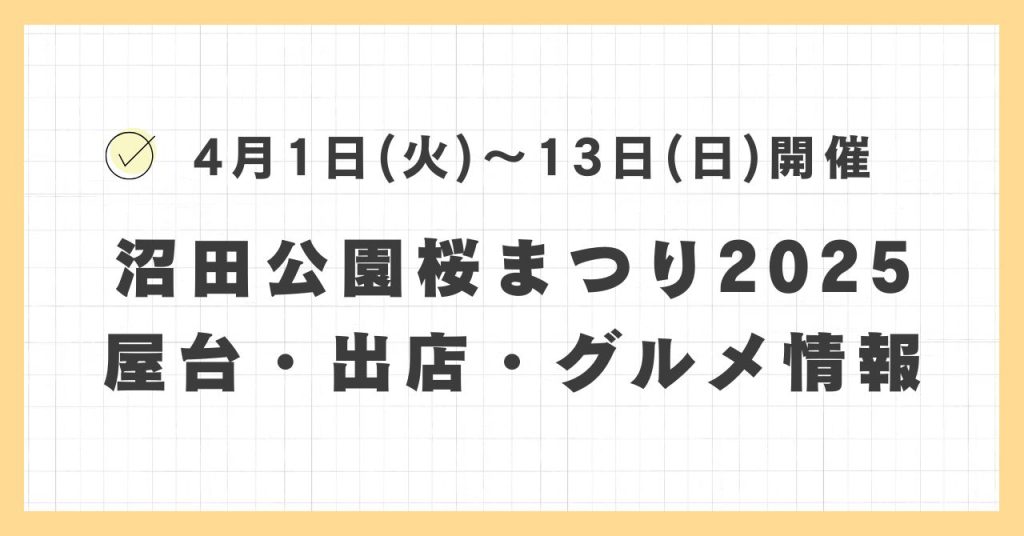 沼田公園桜まつり2025の屋台・ライトアップはどこで何時まで?おすすめのグルメや混雑とすいている時間も紹介