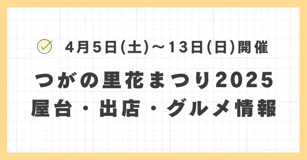 つがの里花まつり2025の屋台・ライトアップはどこで何時まで?おすすめのグルメや混雑とすいている時間も紹介