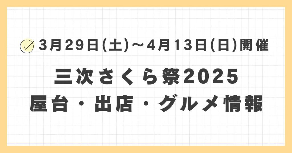 三次さくら祭2025の屋台・ライトアップはどこで何時まで?おすすめのグルメや混雑とすいている時間も紹介