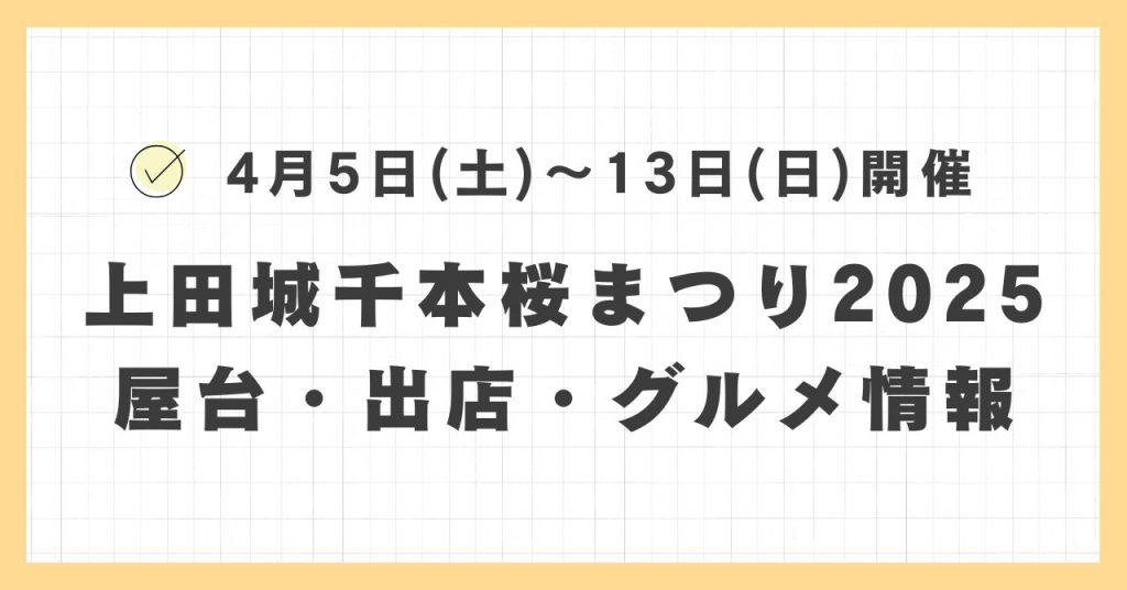 上田城千本桜まつり2025の屋台・ライトアップはどこで何時まで?おすすめのグルメや混雑とすいている時間も紹介