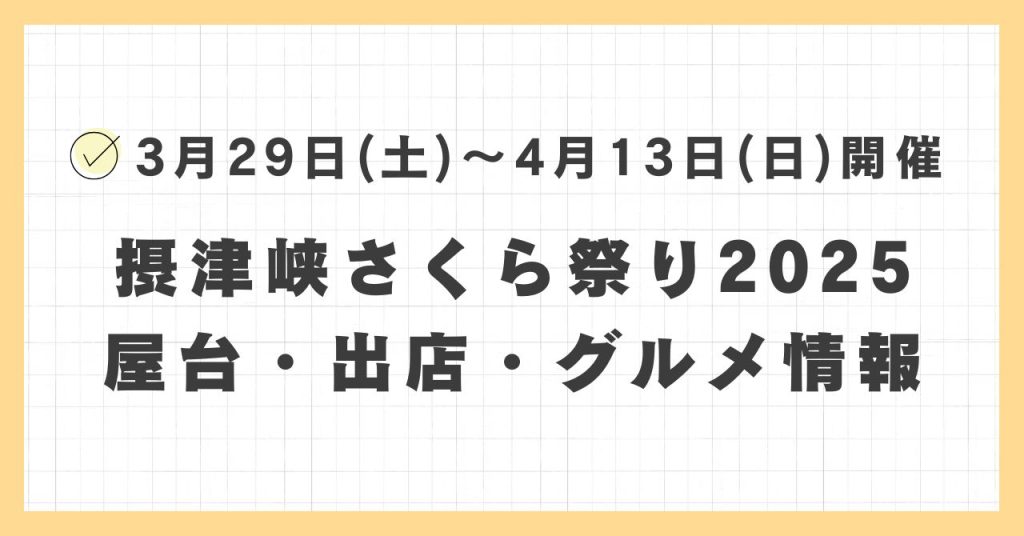 摂津峡さくら祭り2025の屋台・ライトアップはどこで何時まで?おすすめのグルメや混雑とすいている時間も紹介