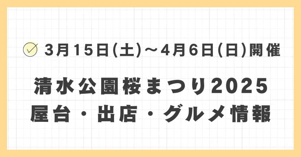 清水公園桜まつり2025の屋台・出店はどこで何時まで?おすすめのグルメや混雑とすいている時間も紹介