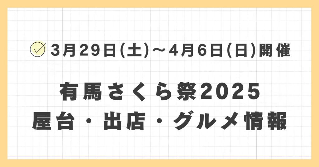 有馬さくら祭2025の屋台・出店はどこで何時まで?おすすめのグルメや混雑とすいている時間も紹介