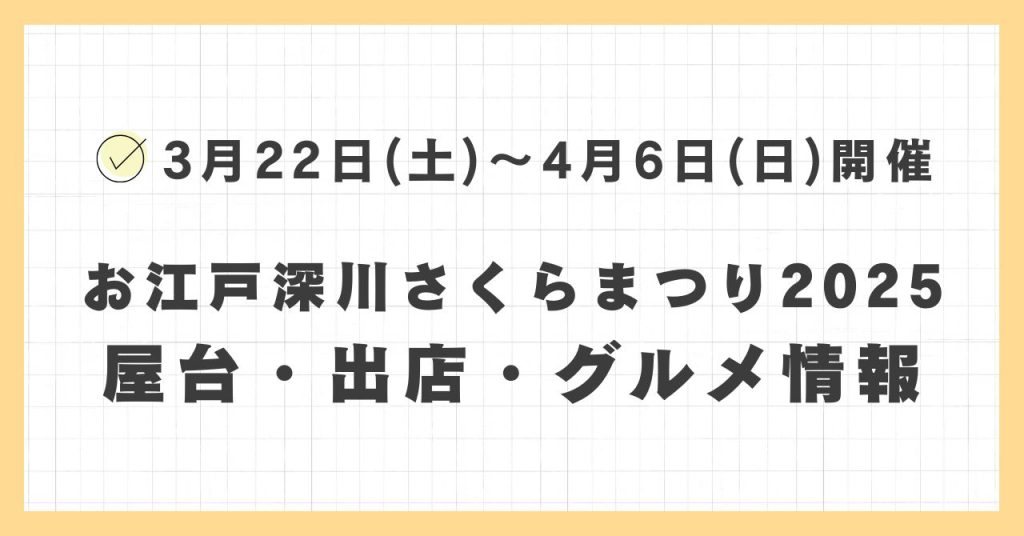 お江戸深川さくらまつり2025の屋台・出店はどこで何時まで?おすすめのグルメや混雑とすいている時間も紹介
