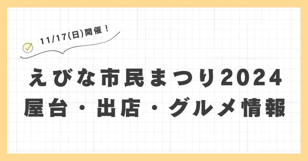 2024年11月17日(日)に、神奈川県海老名市で「えびな市民まつり2024」が開催されます。 えびな市民まつりは約5,000発の花火の打ち上げや、子どもから大人まで幅広い世代が1日中楽しめるイベントを多数実施しているお祭り。 そんなえびな市民まつりですが、... -