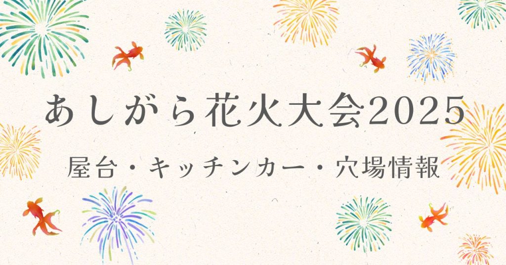 神奈川県開成町と松田町が合同で開催する「あしがら花火大会」が、2025年も予定されています。 酒匂川の河川敷に打ち上がる花火と、地元に根差した屋台グルメが楽しめる、地域密着型の夏イベントです。 この記事では、あしがら花火大会2025の屋台情報・お... -