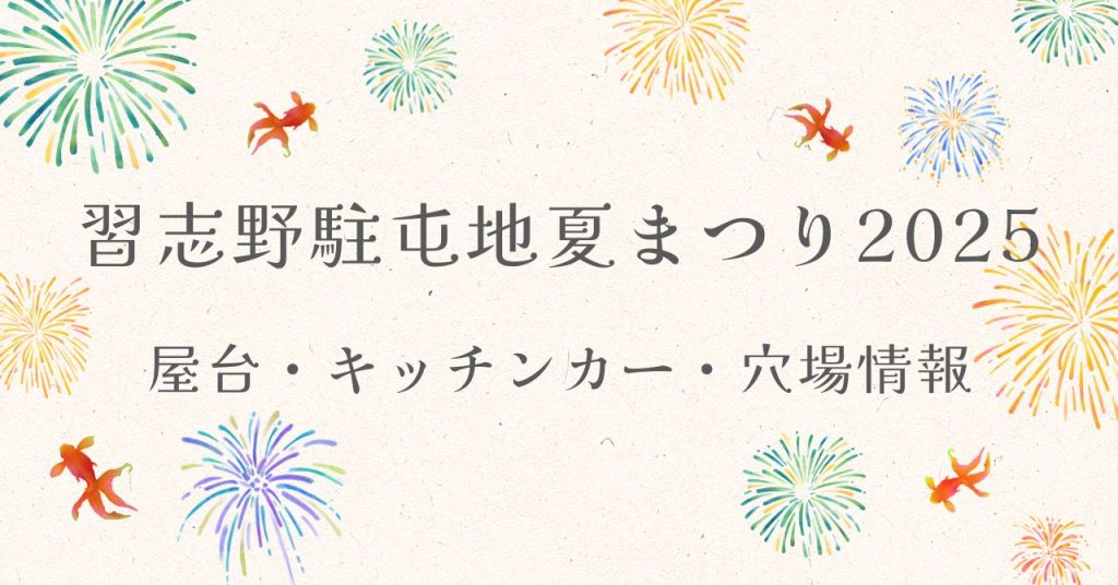 千葉県船橋市にある「習志野駐屯地」で毎年開催される「習志野駐屯地夏まつり」は、自衛隊ファンはもちろん、家族連れにも大人気の夏イベントです。 自衛隊ならではの展示や模擬演習に加え、夜には約300発の花火が打ち上げられます。 この記事では、屋台の...